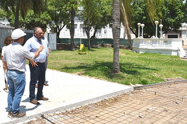 Información General | El ministro de Obras y Servicios Públicos, Claudio Polich, verificó este mediodía los trabajos de restauración, remodelación y mejoramiento integral de la plaza 25 de Mayo, destacando que “las obras sin pausas continúan desarrollándose a buen ritmo estando en alrededor del 50% realizadas ya en lo que respecta a la primer etapa de su ejecución”.