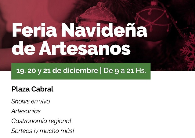 Información General | Del 19 al 21, la plaza Cabral será escenario de la segunda Feria Navideña de Artesanos organizada por la Municipalidad de Corrientes con el objetivo de ofrecer a vecinos y turistas productos artesanales y de calidad a buenos precios. Además habrá shows en vivo y sorteos entre los presentes durante todas las jornadas.
