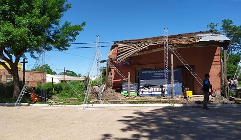 Información General | Se encuentra en su etapa final el tinglado desmontable que construye la Provincia para protección para la antigua Casa que albergó al Gobierno Provincial durante la guerra de la Triple Alianza en la localidad de San Roque, al tiempo que se avanza en tareas de recuperación del predio.