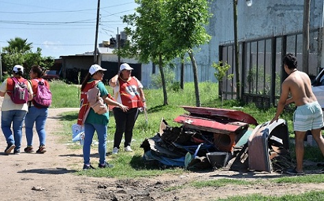Información General | En una acción articulada con el Gobierno Provincial, promotores ambientales realizaron este miércoles una recorrida por el barrio Alta Gracia, donde se dialogó con los vecinos y se les explicó la importancia de no tener recipientes que pueden ser criaderos de mosquitos. Entre tanto, durante la tarde los camiones retiraron los cacharros que sacaron los vecinos.
