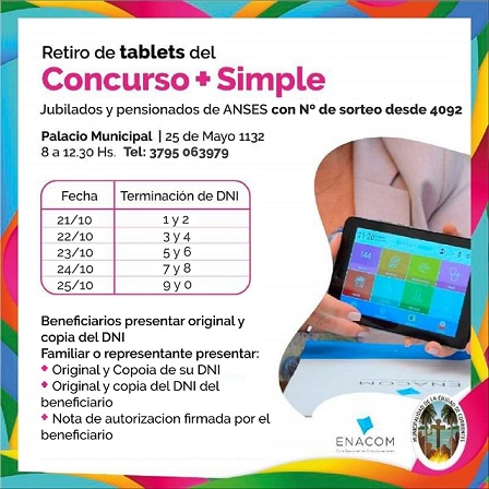 Información General | A partir del lunes 21 de octubre se procederá a realizar la entrega de tablets para quienes hayan sido beneficiados en el programa “Más simple”. Con esta entrega completan 5 mil beneficiarios.