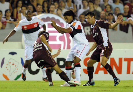 Deportes | El Granate estuvo abajo sin merecerlo por un gol de Moura (PT 46m), pero reaccionó en el segundo tiempo y logró el 1-1 final como local gracias a Carranza (ST 30m). Ronaldinho mostró flashes intermitentes de fútbol. Fue el debut de ambos en el Grupo 2, también integrado por Emelec y Olimpia.