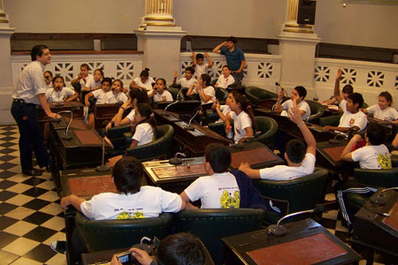 Política | En la mañana del viernes el vicegobernador, Pedro Braillard Poccard, recibió a los alumnos del quinto año del nivel primario de la Escuela Nº82 “Amado Bonpland” de la localidad de Mercedes, Corrientes, en el marco del programa “El Colegio al Senado” que forma parte del esquema institucional del Poder Legislativo.