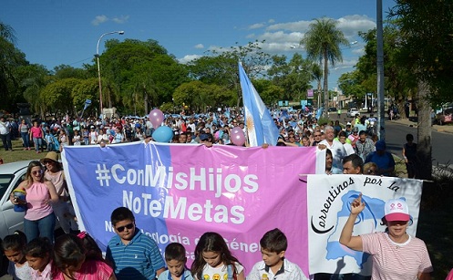 Información General | En costanera, desde el parque Mitre hasta el anfiteatro “José Hernández”, unas 500 personas caminaron expresando su postura opositora a las reformas de la Ley 26.150.