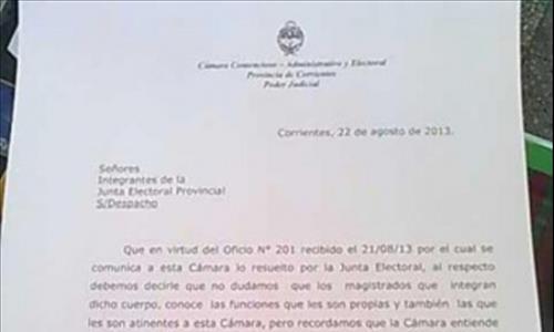 Política | A través de un comunicado dado a conocer hoy, la Cámara Contencioso Administrativa y Electoral le comunicó a la Junta Electoral que "todas las resoluciones judiciales en temas electorales se ajustan a los plazos legales y procesales", en respuesta al reclamo de ésta sobre la necesidad de avanzar con rapidez.