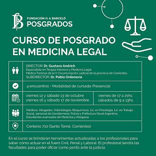 Información General | Fundación Barceló anuncia la apertura de las inscripciones para cursar en Sede Santo Tomé, el Posgrado en Medicina Legal. Con modalidad presencial que inicia el cursado el viernes 12 de octubre.