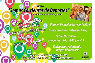 Información General | Este sábado 7 de julio, se realizará el evento deportivo de carácter comunitario y social: “Somos Corrientes de Deportes” en el predio ubicado en Av. Maipú y Alta Gracia, del barrio San Antonio Este.