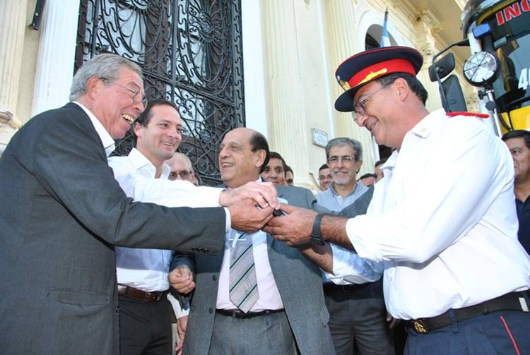 Política | Fue al compartir una jornada de trabajo junto al Secretario de Medio Ambiente y Desarrollo Sustentable de la Nación, Juan José Mussi y una decena de Intendentes. En la oportunidad se entregó una autobomba para los bomberos voluntarios de Saladas y el Jefe Comunal de Santa Rosa, Juan José Encinas firmó un convenio por similar equipamiento.